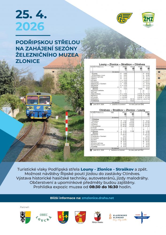 Hamerník expres 2026 se blíží, nezapomeňte!Autor : Ing. Jiří Svoboda Vloženo : 20.04.2026 06:27 Přečteno : 3 x Počet komentářů : 0V sobotu 16. května 2026 již podevětadvacáté vyjedou historické vlaky a autobusy při příležitosti konání Hamernického v Dobřívě. |